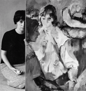 Al terminar la pintura se sentó frente a su mesa de madera: mesa de artista, colmada de bitácoras, lápices, carboncillos y papeles. Apoyó con firmeza los codos, dejando que asomaran las manos entre las mangas de su bata blanca, endurecida por las capas de óleo que se habían acumulado a lo largo de los años: una costra hecha de tiempo y disciplina. Era la misma bata que escogía para entrevistas y sesiones de fotos, como una forma de declarar —sin palabras— su oficio de pintora.