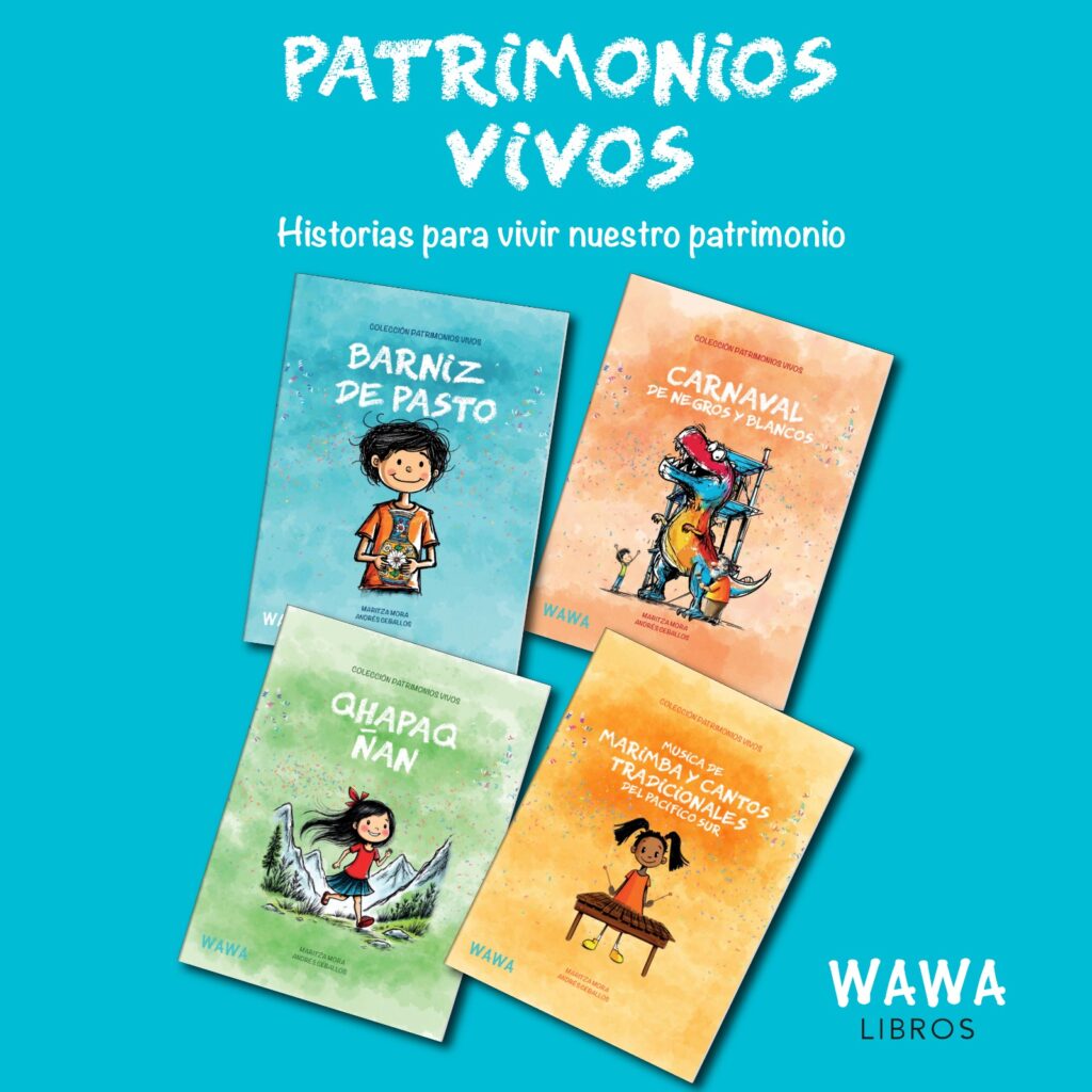 Patrimonios vivos es una colección de cuatro libros que buscan acercar a niños y niñas al inmenso legado cultural del departamento de Nariño, a través de historias ilustradas y un lenguaje cercano, sensible y lleno de imaginación. Nariño es el único territorio en el mundo donde convergen cuatro patrimonios inmateriales de la humanidad declarados por la UNESCO: el Carnaval de Negros y Blancos, la música de marimba y cantos tradicionales del Pacífico Sur colombiano, el Barniz de Pasto y el Qhapaq Ñan, el gran sistema vial andino. Cada libro revela la riqueza de nuestros patrimonios invitando a descubrir que la cultura no es solo memoria: es juego, es identidad y es una forma de habitar el mundo. Un viaje para mirar lo propio con asombro y orgullo.