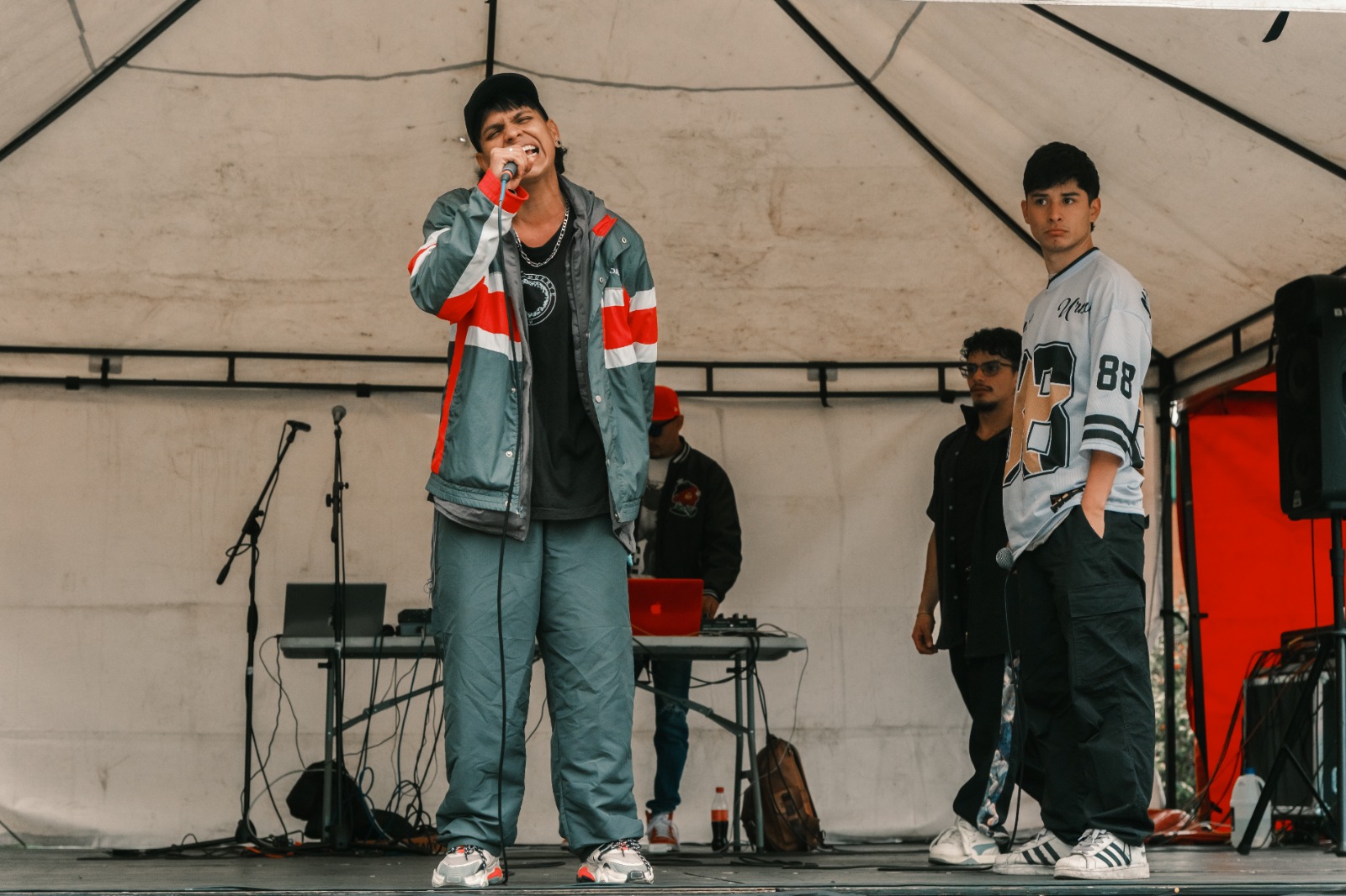 Es el primer día de Hip Hop al Parque 2025 y, en una esquina del Parque Simón Bolívar, se alza una tarima dispuesta para el freestyle. El maestro de ceremonia fue Kramphuz, uno de los host más reconocidos del país, desde el escenario una vez más refuerza la idea de que «el freestyle es una forma de resolución de conflictos a través de la palabra».