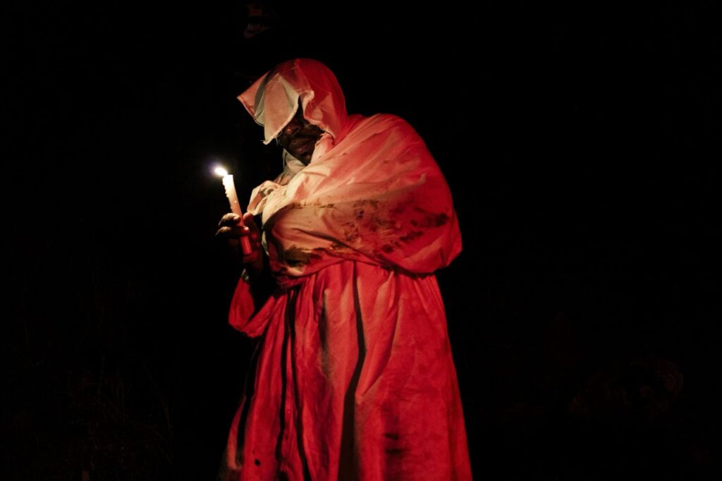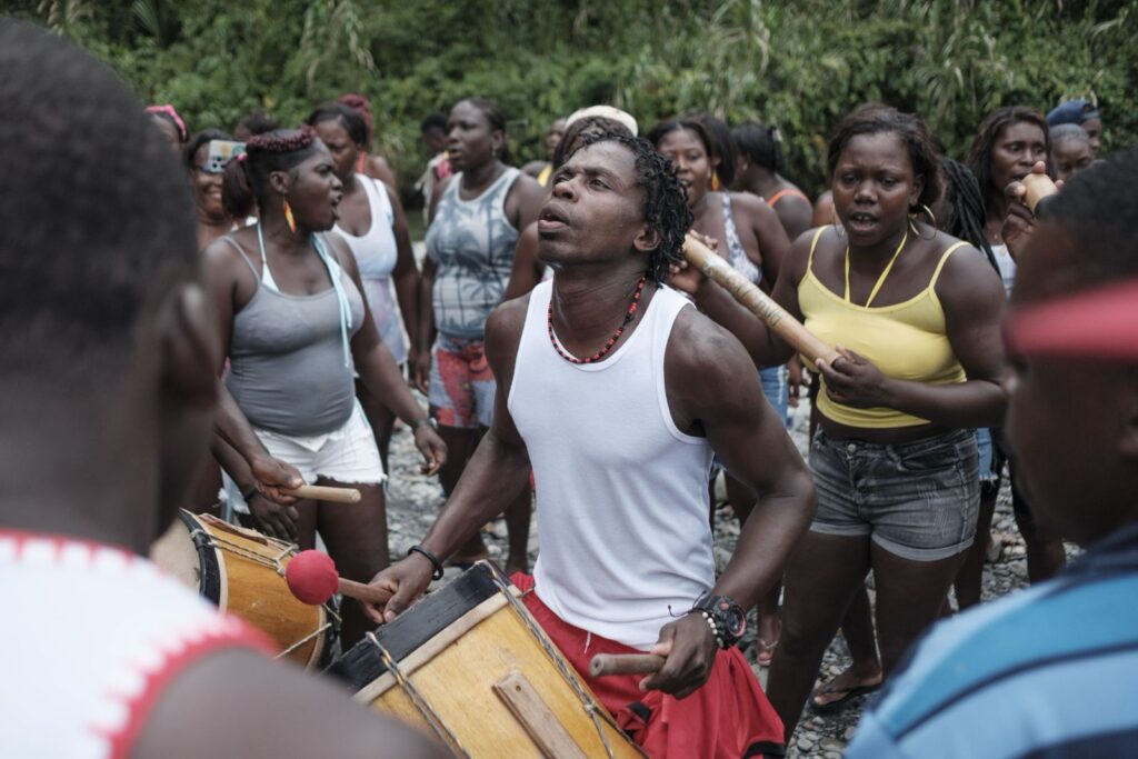 Un grito rasgado se replica durante la Semana Santa y enmudece a un río: «Muera Dios y viva Barrabás», corean los manacillos. Sus voces emergen como cacofonías detrás de coloridas máscaras talladas en madera de balsa. Las mujeres y el resto de la comunidad responden desafiantes: «¡Viva Dios y muera Barrabás!». Franklin Valencia, líder social y músico de la agrupación Marachindé, hace sonar el bombo con el tradicional golpe de Galilea. Así inicia la teatralización de la muerte y resurrección de Jesucristo, desde la ancestralidad y la cultura de la comunidad afrocolombiana de Juntas de Yurumanguí, la última aldea del río Yurumanguí, Valle del Cauca, en el Pacífico colombiano.