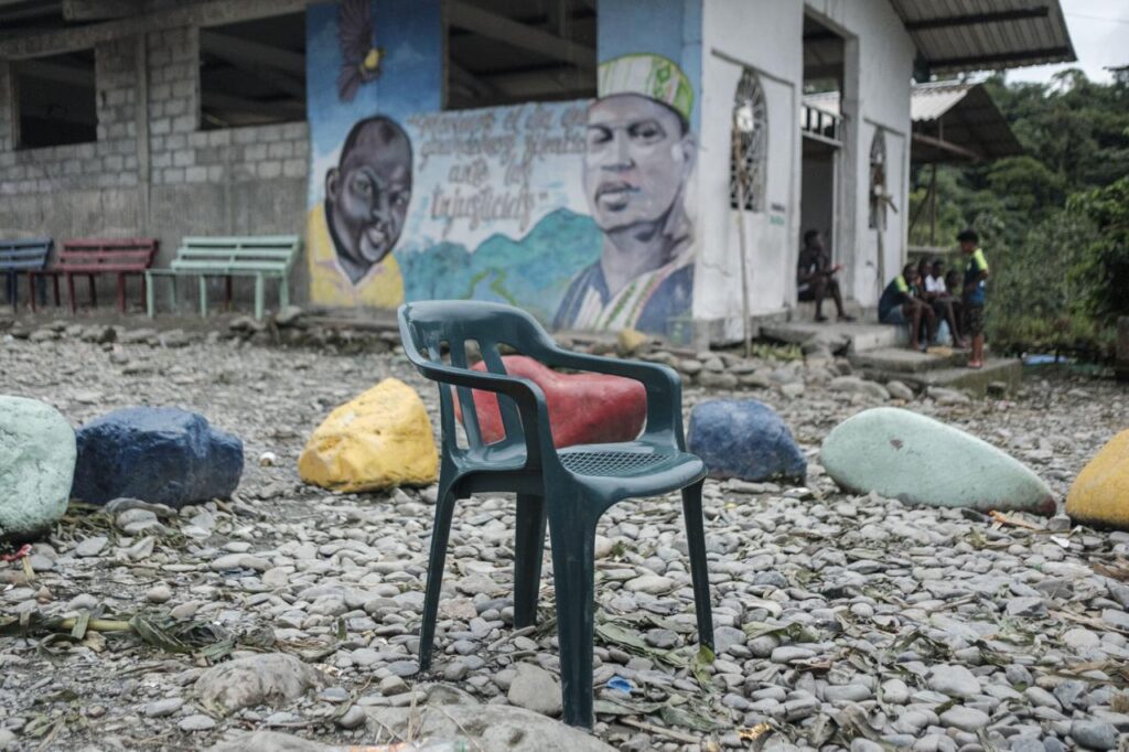 El ritual es una catarsis colectiva que silencia las armas, paraliza la selva y a los que se camuflan en ella. En 2021, Juntas enmudeció por un dolor común luego de que Abencio Caicedo Caicedo y Édinson Valencia García, dos líderes sociales y reconocidos manacillos, fueran secuestrados y desaparecidos por un grupo armado. Hoy sus retratos adornan la pared principal de la iglesia y una frase recuerda su legado: «Moriremos el día que permanezcamos en silencio ante las injusticias». Abencio y Édinson dieron la vida para liberar al río y proteger a su pueblo, y el pueblo los honra como honra a San Juan, con rezos y cantos de lamento.