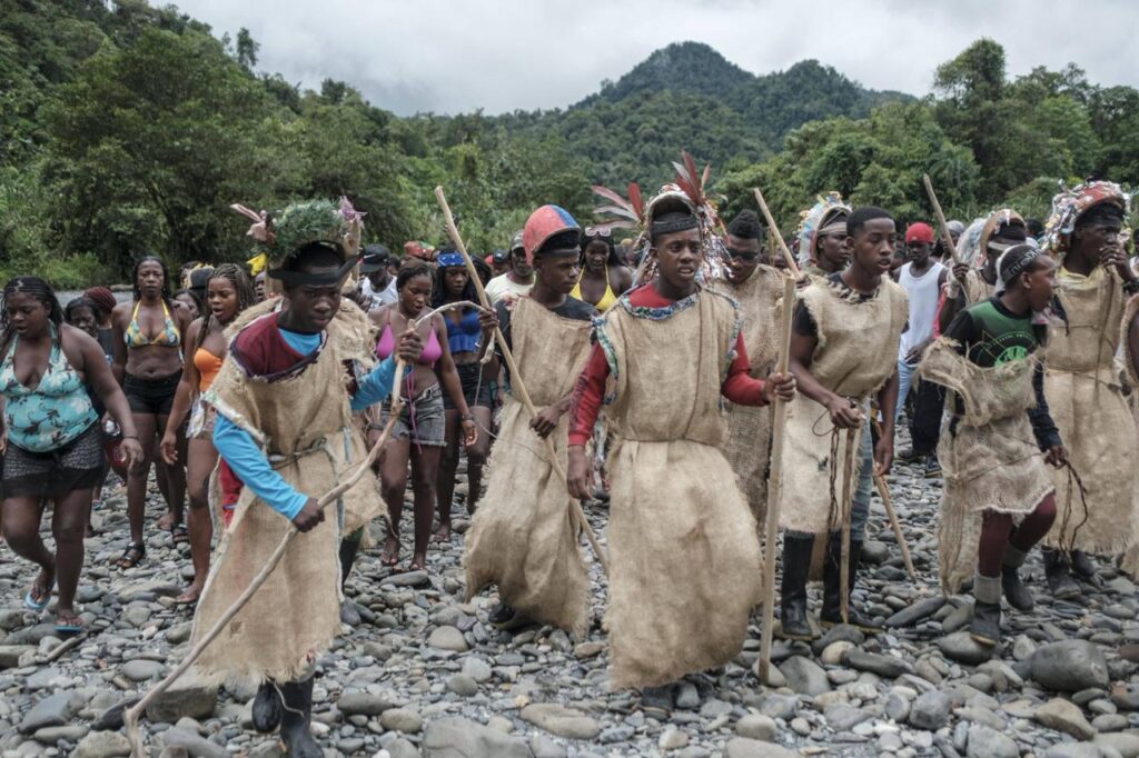 A la comunidad de Juntas la atraviesan carencias estructurales, el abandono estatal y la incesante presencia de actores armados y narcotraficantes que la amedrentan para explotar sus recursos y su territorio. En este contexto, su resistencia también encuentra un canal a través de una cultura tan antigua que ni los adultos mayores de la comunidad recuerdan el momento exacto en que inició, pero que estaría vinculada a la resistencia de los primeros esclavizados que fueron llevados a ese territorio, que con los años mutó en esta ceremonia. «Siento orgullo por esta tradición, porque significa respetar a nuestros ancestros», dice Henry Jair García Valencia, de diecisiete años, que heredó el cargo de manacillo de un tío fallecido después de admirar desde niño la festividad.