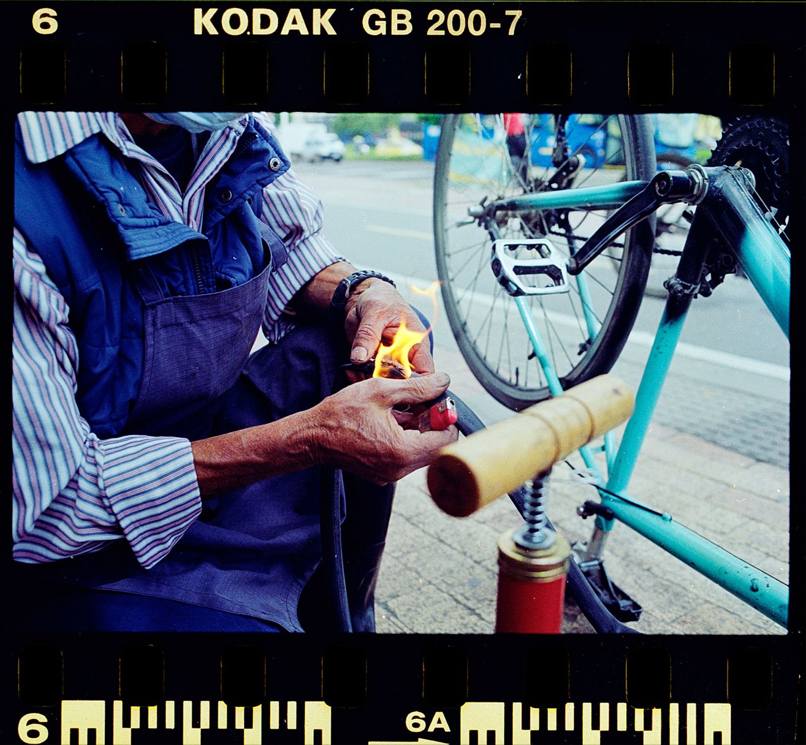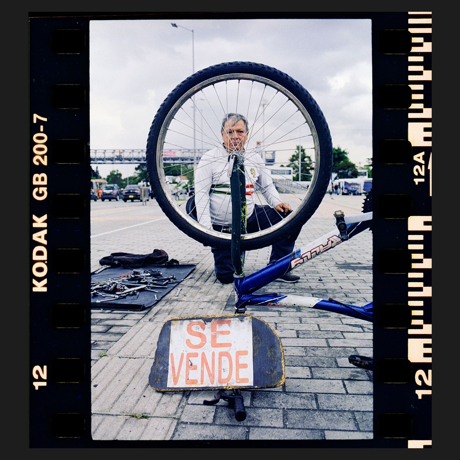 A partir de conversaciones con mecánicos de bicicletas, chaceros y migrantes surge este proyecto poético en Bogotá, un mapa hecho de asfalto y lenguaje elástico, de manos que montan y desmontan, en el que siempre aparece alguien que necesita aire.